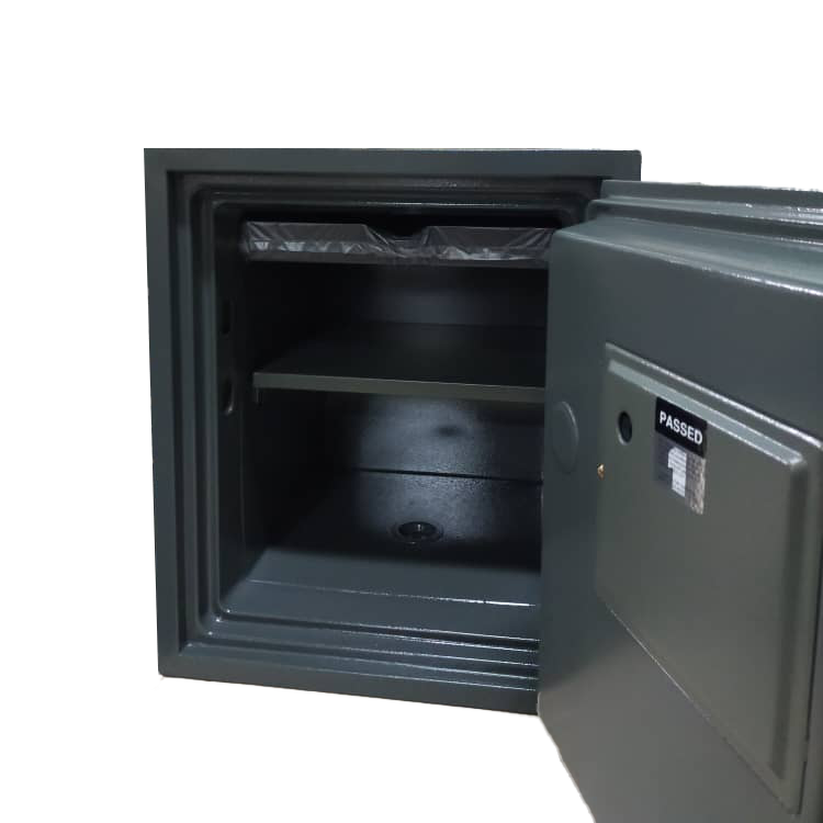 Locking system: Electronic lock + key lock and master key to open the safe.